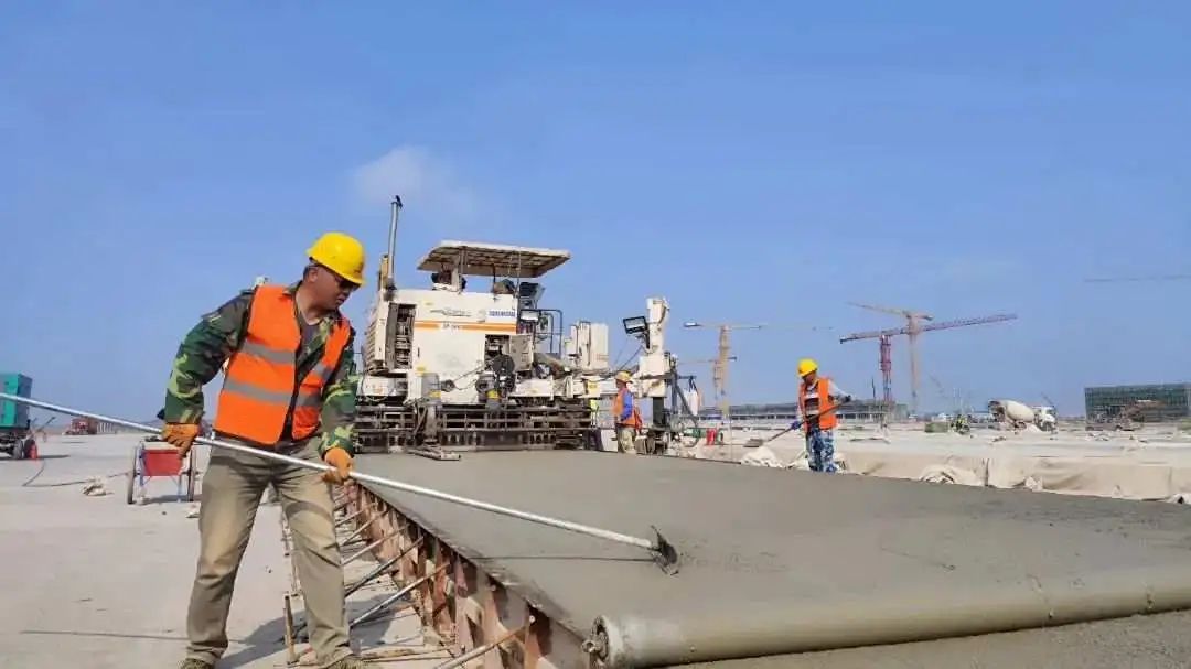 近日,嘉兴机场站坪区主体结构层道面混凝土施工正式开始浇筑,标志着该工程全面掀起“大干快上”攻坚热潮。