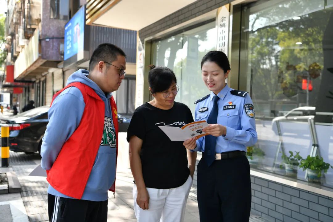 余姚市阳明街道龙泉社区民警胡意双为群众普及“平安三率”知识。市委政法委供图