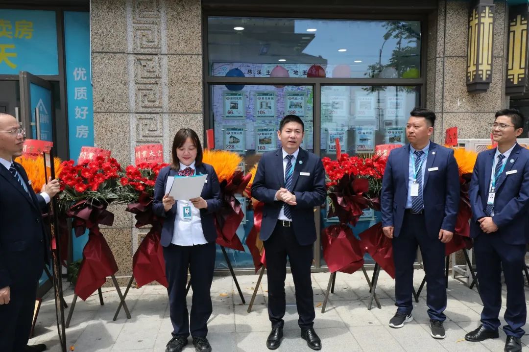 南天·甬上找房总经理陈恩、常务副总郑桂良、总经理助理余晓霞及各部门负责人到场祝贺。总经理助理余晓霞主持开业典礼。