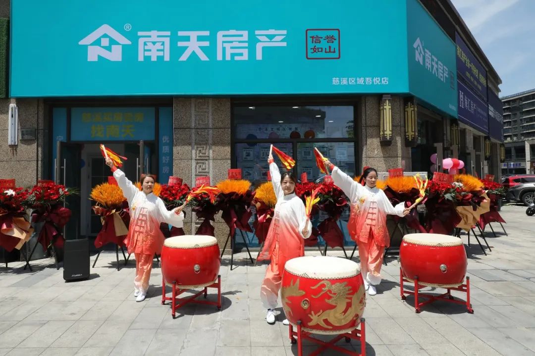 上午10点58分,开业典礼在南天·甬上找房威风锣鼓队激越昂扬的鼓声中拉开序幕。