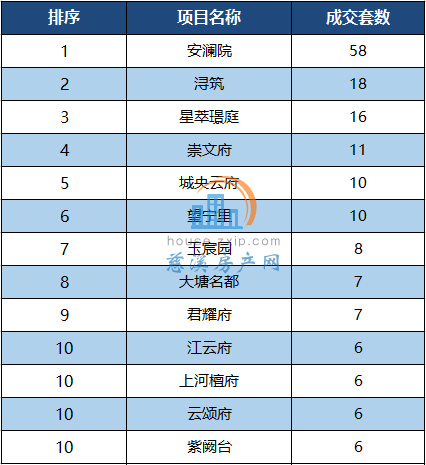 商品住宅成交套数TOP10