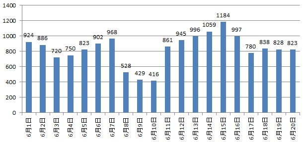 2024年6月上海二手房单日成交量,图片由上海中原地产向时代周报提供