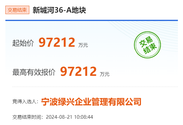 10941元/㎡!慈溪新城河36-A未来社区地块总价97212万元成交