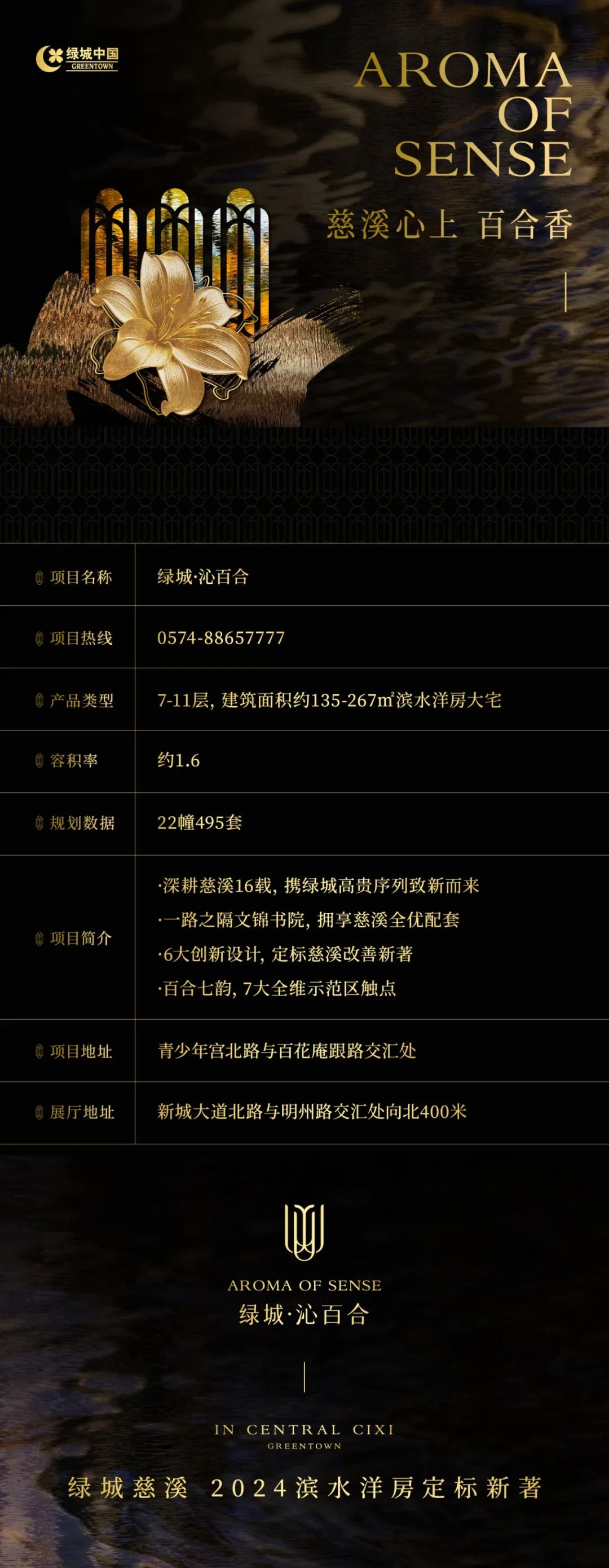 2024金秋,桂花飘香,绿城高贵百合序列,再一次为慈溪而来。百合序列自北京、上海、杭州至慈溪,以傲立城市菁华地段的华美姿态,备受城市高端购买力青睐,这个绚烂的故事也将在慈溪被续写。
