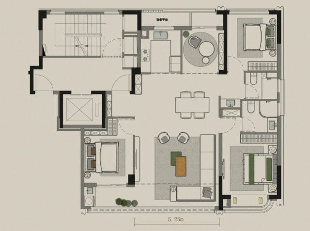 绿城顺应需求,也推动着需求。约133方与约137方均拥有市面罕见的南北双面阳台,一面生活阳台,负责家政晾晒,一面观景生活,收获风光暖阳,将生活的秩序感轻松拿捏。