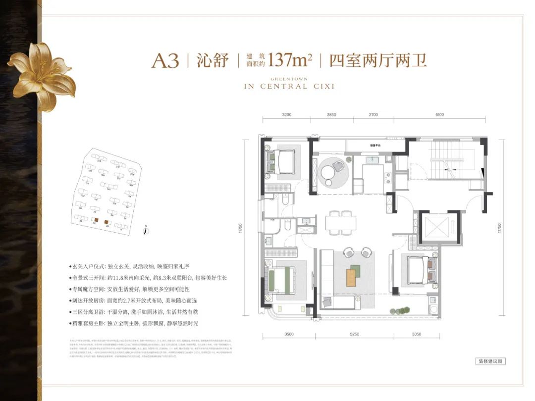 对绿城而言,房子是承载生活的空间,是承载美好的场所,也是承载时代理想的建筑印记。如此信念之下,沁百合从慈溪改善家庭生活习惯着手,宜人的尺度、创新的设计、精妙的布局,经数轮优化,在约133方与约137方户型中,倾力展示当代初改家庭的优越空间,满足成长型家庭的真实所需。