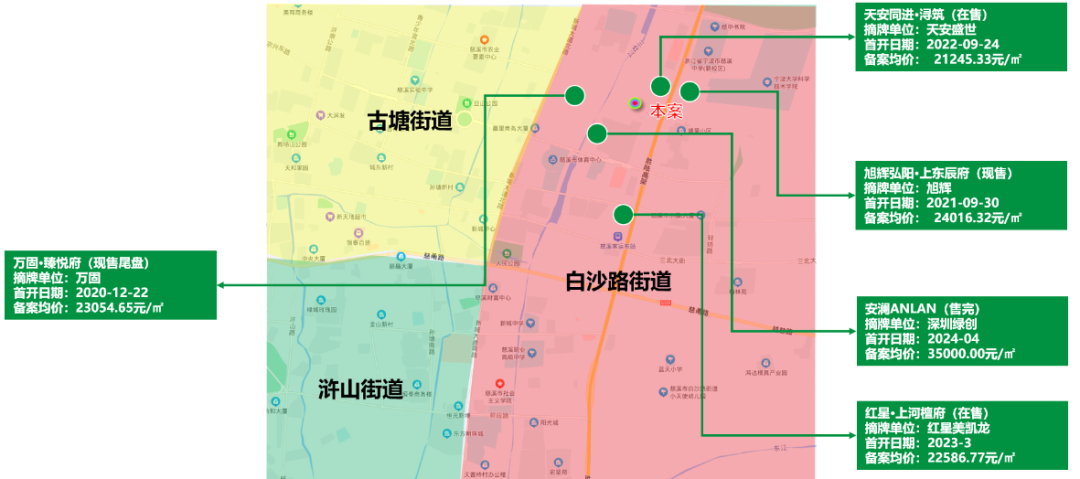 土市上,2021年以来,地块周边成交10宗涉宅地,其中成交距离、时间最近的是2024年8月21日宁波绿兴企业管理有限公司(绿创)所拿新城河36-A地块,成交楼面价10941元/㎡。