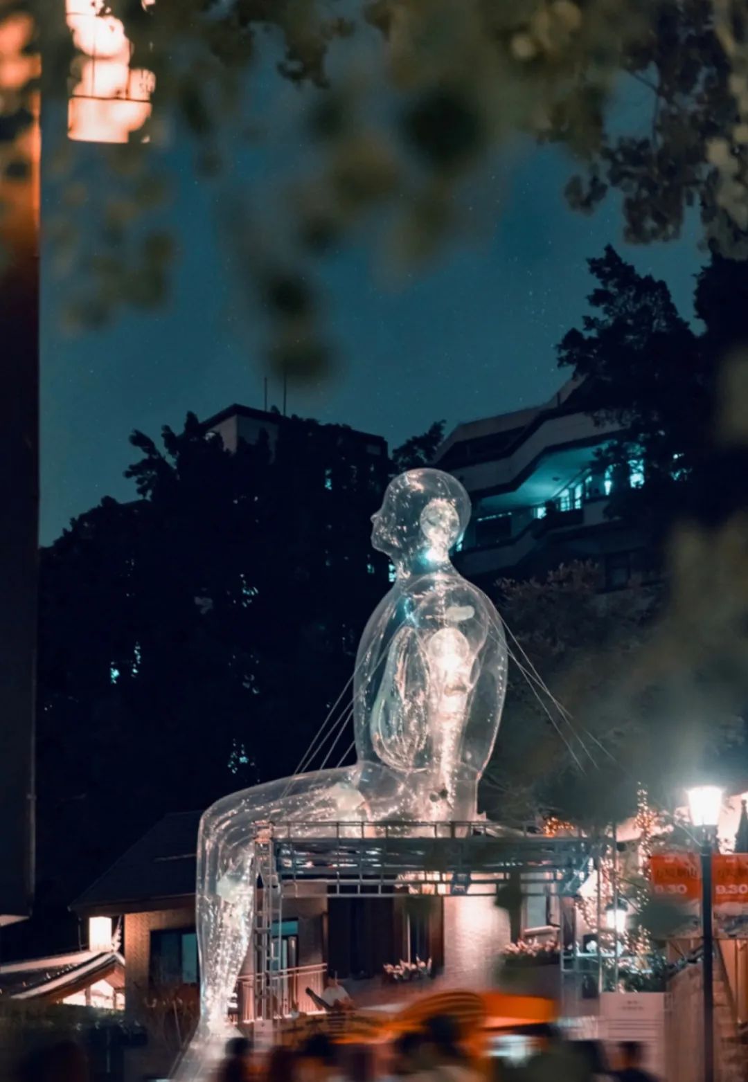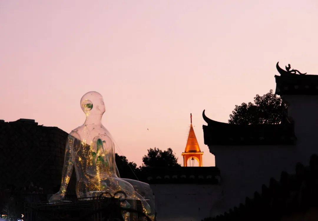 圣诞之夜,一座俯瞰新城河的“透明巨人”悄然出现在安麓艺术中心的露台,短时间内吸引众多新河坊的游客瞩目观望,路人们驻足思量,或是拍照打卡,或是好奇讨论,更有甚者临河而坐久久对望,思绪万千。