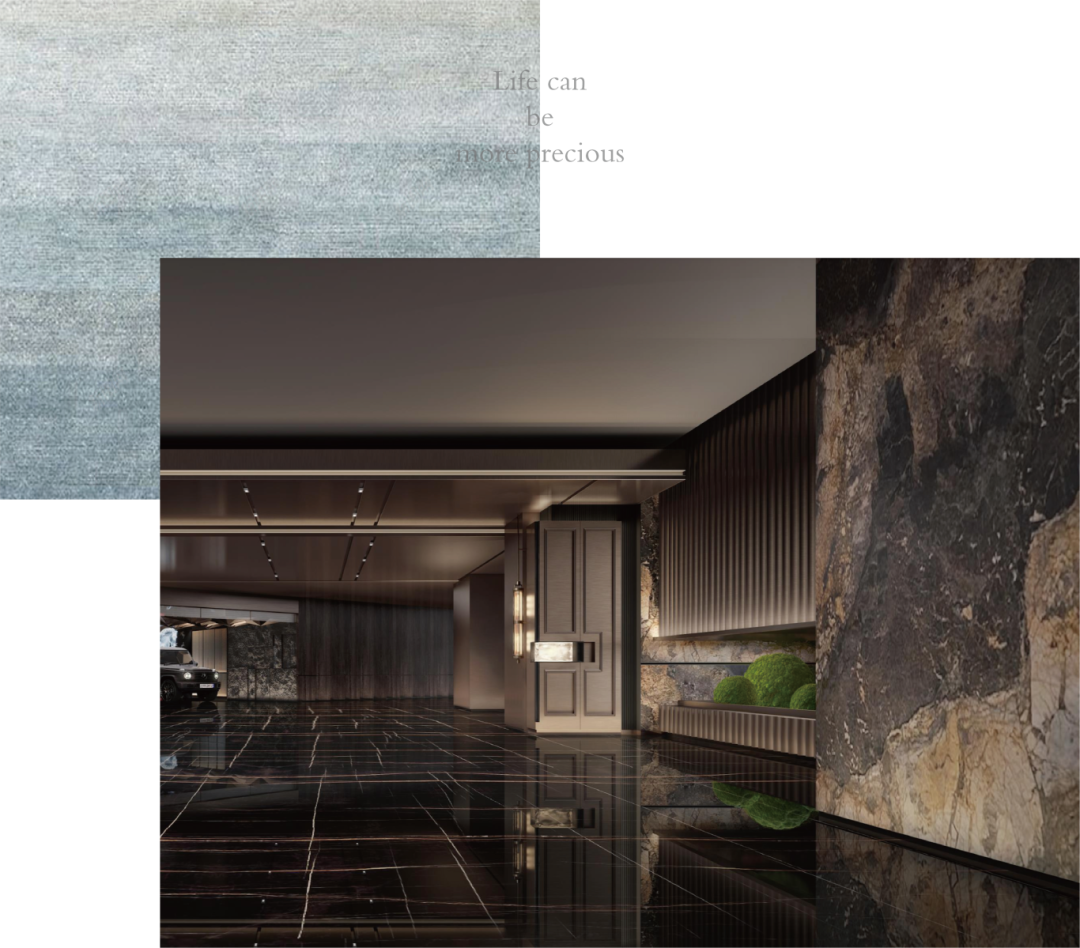善在波澜处,波澜不惊的人生,如何投影在地下空间之上,CCD香港给出了无限完美的答案:地库在这里同样被无限尊重,强调五星级Hotel-Style体验和仪式感。地库的地面拼花,顶部金属格栅造型、铝板立柱与柱面艺术灯光点缀相互呼应,搭配立体光源,整体空间光华流转,充满雅奢质感。在“天光系统”设计理念之下,安麓“光合地库”诞生,通过绿植和微景观,呼应“麓有诗鸣”,尊荣的情绪与仪式感瞬间顶格。
