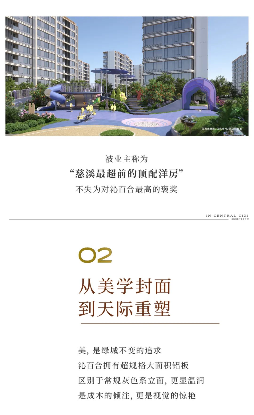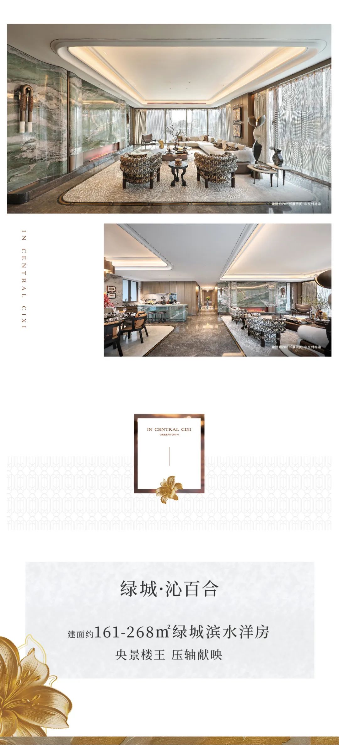 本资料所有文字、数据、图片及所标尺寸等仅为要约邀请,不作为要约或承诺,本文提及的相关宣传内容不排除因政府相关规划、规定、出卖人分期规划及其他原因而发生变化,一切有关本项目及房屋的具体信息及买卖双方权利义务均以书面合同及政府最终审批文件为准。本文中提及的泛会所非报批功能描述,系指本项目部分楼栋架空层共同组成的特定功能区域。一切未列举事项或更改,不再另行通知,敬请留意最新资料。本资料的发布时间为【2025】年【3】月,有效期【3】个月,本公司保留对本资料修改的权利且不再另行通知,敬请留意最新资料。本项目核准地名为【沁百合府】,推广名为【绿城·沁百合】,开发商【慈溪浙熙房地产开发有限公司】,预售证号【慈溪房预许字(2024)第00170号】慈溪房预许字(2024)第00197号。