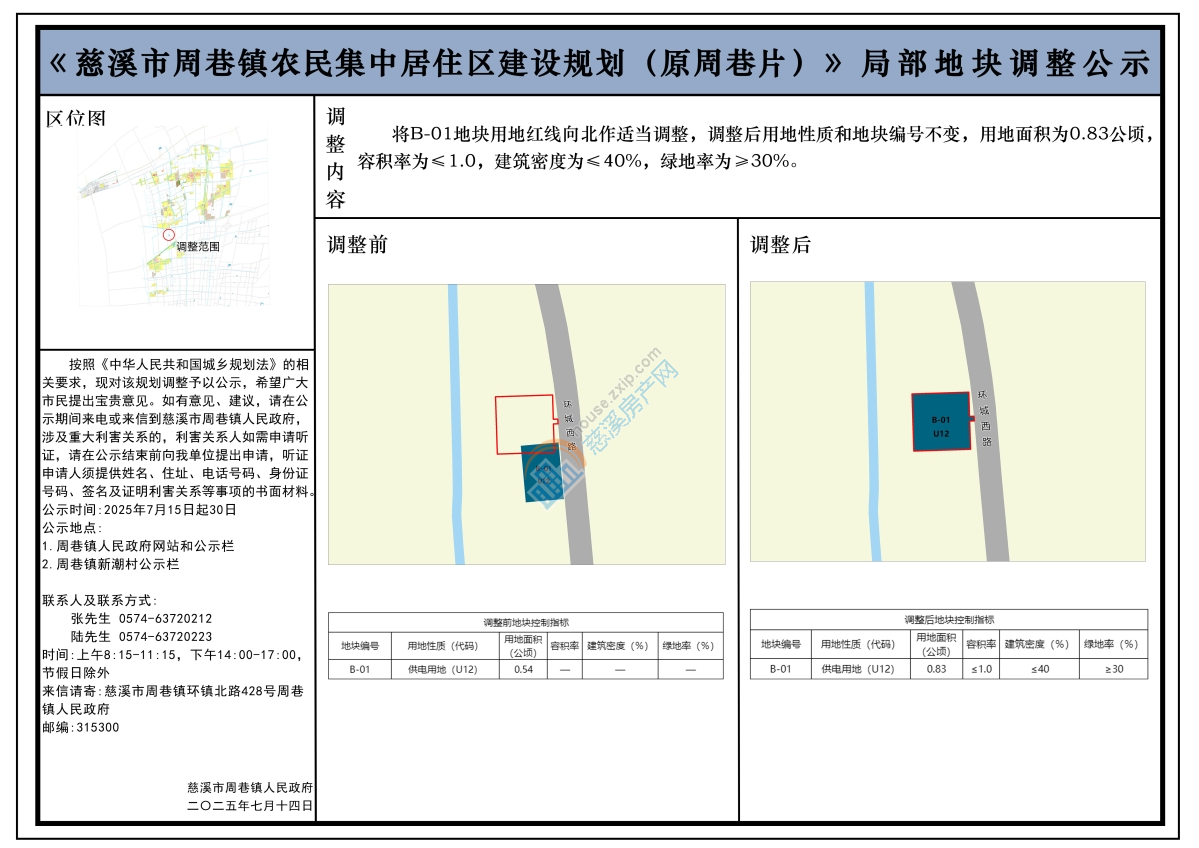 《慈溪市周巷镇农民集中居住区建设规划(原周巷片)》局部地块规划调整方案公示