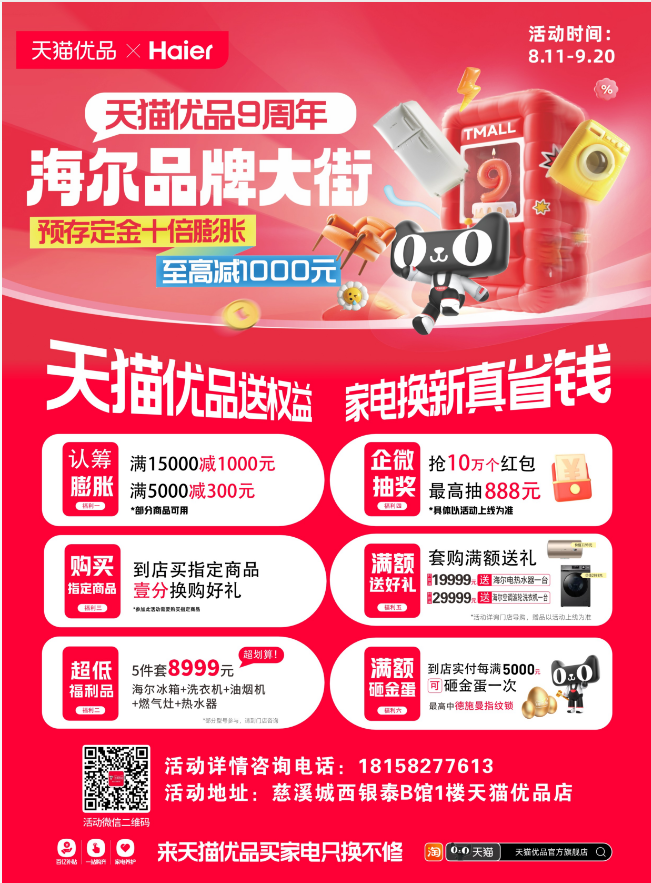 慈溪宗汉街道城西银泰天猫优品B馆一楼,夏季海尔品牌大爆发。