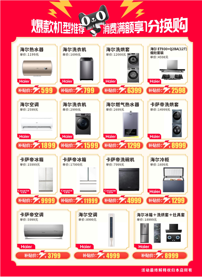 8月11号到9月20号 购买海尔家电套即送海尔循环扇一个,满15000减1000元,满5000减300元,