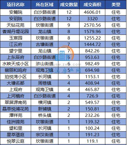 ②表格中楼盘类型“住宅/车位”表示该楼盘成交时同时包括住宅和车位两类。