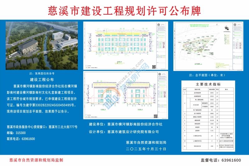 慈溪市横河镇彭南股份经济合作社拟在横河镇彭南村建设横河镇彭南村文化礼堂新建工程项目,该工程符合城市规划要求,已申领建设工程规划许可证,编号为建字第3302822024GG0450495号,现将该项目规划总平面图、效果图予以告示。