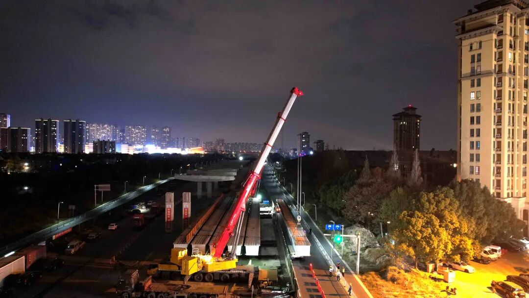 “封道期间,我们通过专人疏导、预警设置等方式全力保障交通安全与秩序。”承建方中铁十六局项目书记范超辉介绍道。施工期间,项目部从吊装顺序精度控制到吊装速度把控,严格按照操作规程,全程落实专职安全员旁站,确保钢箱梁架设精准、安全。