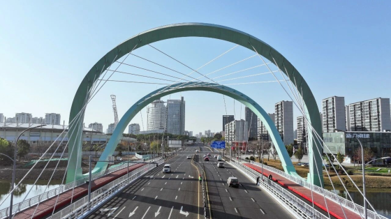 作为新城河五座新建桥梁的重要组成,开发大道桥的通车将有效分流三北大街桥的交通压力。双向六车道的设计容量既可满足未来区域发展需求,独立的非机动车道又实现人车分流,显著提升通行安全。