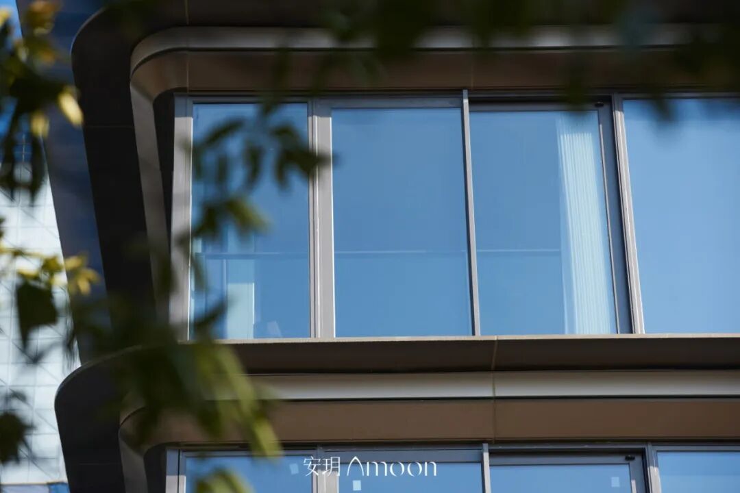 在外立面的处理上,安玥采用低饱和度的天然石材与金属材质交错,并借由精细的手工打磨与层次处理,让石材表面在光线下泛出温润如丝绸般的光泽,形成“锻石成绸”的肌理感与流动的柔软质感。整体线条干净利落,摒弃冗余装饰,让光与影成为立面的真正主角。色彩上以灰、米白、暖咖为基调,沉稳中透出温度。