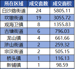 其他区域表现平淡,乡镇项目除观海卫镇外,多仅有个位数成交。