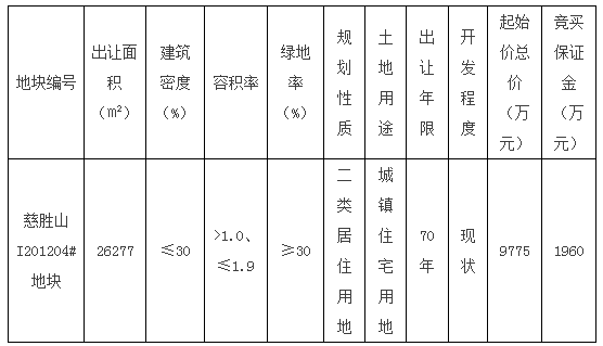 慈胜山I201204#地块拍卖出让公告